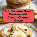 These Banana Bread Cookies combine the soft, moist flavors of classic banana bread with the fun, portable format of a cookie. Topped with a smooth cream cheese glaze, they make a delightful treat perfect for any time of day.