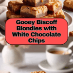 Keywords: Biscoff blondies, white chocolate blondies, easy blondie recipe, Biscoff spread dessert, chewy blondies, homemade blondies