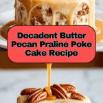 Indulge in the rich, buttery flavors of this Butter Pecan Praline Poke Cake. With a moist yellow cake soaked in a sweet praline sauce and topped with whipped cream and crunchy pecans, it’s a delightful dessert perfect for any occasion.