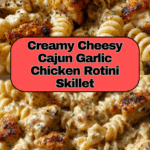 This Cheesy Cajun Garlic Chicken Rotini Skillet is a delicious one-pan meal that’s creamy, cheesy, and packed with flavorful spices. It combines tender chicken, perfectly cooked rotini, and a rich, cheesy sauce with a hint of Cajun heat. Ready in under 30 minutes, it’s an easy and satisfying dinner option for any night.