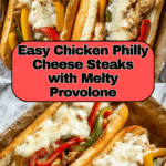 This Chicken Philly Cheese Steaks recipe delivers a flavorful and satisfying twist on the classic Philly cheesesteak, using thinly sliced chicken breasts cooked with sautéed onions and bell peppers, all melted together with provolone cheese and served in hoagie rolls. It’s quick to prepare and perfect for a hearty meal with optional add-ins to customize your sandwich.