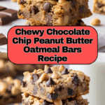 Delicious and chewy Chocolate Chip Peanut Butter Oatmeal Bars made with wholesome rolled oats, rich peanut butter, and melty chocolate chips. These bars are perfect for a snack, breakfast on the go, or a satisfyingly sweet treat that combines the comforting flavors of peanut butter and chocolate in a healthy oatmeal base.