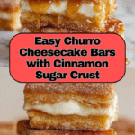 Churro Cheesecake Bars combine the cinnamon-sugar flavor of classic churros with creamy, rich cheesecake layered between flaky crescent roll dough. This easy-to-make dessert features a buttery, puffed golden crust dusted generously with cinnamon sugar, making it a perfect sweet treat for any occasion.