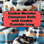 Cookie Monster Cinnamon Rolls are a delightful twist on classic cinnamon rolls, featuring a vibrant blue dough and a rich filling packed with crushed chocolate sandwich cookies and mini chocolate chips. Topped with creamy cream cheese icing and extra cookie crumbles, these sweet treats are perfect for breakfast, brunch, or dessert lovers looking for a fun and indulgent bake.