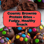 Cosmic Brownie Protein Bites are a delicious and nutritious no-bake snack combining almond flour, protein powder, and rich cocoa for a fudgy brownie flavor. Coated in melted dark chocolate and topped with mini rainbow chocolate chips, these bites are perfect for a quick energy boost or a healthy sweet treat.