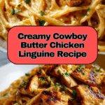 Cowboy Butter Chicken Linguine is a creamy, flavorful pasta dish featuring tender pan-seared chicken breasts in a rich garlic butter sauce infused with smoked paprika and a hint of spice from red pepper flakes. Tossed with linguine and finished with Parmesan cheese and fresh parsley, this dish delivers a comforting and satisfying meal perfect for any weeknight dinner.