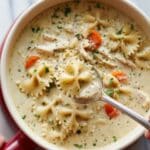 Keywords: Creamy Chicken Alfredo Soup, Chicken Alfredo Soup, Bowtie Pasta Soup, Creamy Chicken Soup, Comfort Food Soup, Italian Soup