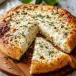 This creamy White Garlic Pizza Sauce recipe combines a rich garlic-infused béchamel base with parmesan cheese, creating a delicious alternative to traditional tomato sauce. Perfect for an indulgent homemade pizza, this sauce enhances the flavor with garlic and herbs, resulting in a bubbling, golden crust with melty cheeses and fresh basil garnish.
