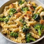 This creamy Rotisserie Chicken Broccoli Pasta is a comforting and delicious weeknight meal that combines tender shredded rotisserie chicken with perfectly cooked penne pasta and fresh broccoli florets in a rich, cheesy cream sauce. Ready in just 35 minutes, this dish uses simple pantry staples and is elevated by Italian seasonings and freshly grated Parmesan and mozzarella cheeses for an indulgent yet easy dinner option that your family will love.