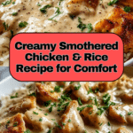 Creamy Smothered Chicken & Rice is a comforting and flavorful dish featuring juicy chicken thighs or breasts smothered in a rich, creamy sauce made from heavy cream, chicken broth, and a touch of Worcestershire sauce. This recipe is packed with savory depth from seared chicken and a homemade roux, served over fluffy rice for the perfect hearty meal.