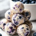 Keywords: Blueberry Cheesecake Protein Bites, no-bake protein snacks, healthy snacks, clean eating, high-protein snack, Greek yogurt bites, almond flour snacks, blueberry desserts, easy protein bites