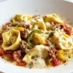 Keywords: Crock Pot Cheesesteak Tortellini, slow cooker cheesesteak pasta, cheesy tortellini recipe, easy beef tortellini, crockpot recipes
