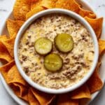 This Crockpot Big Mac Dip captures the iconic flavors of the classic burger in a warm, cheesy dip that’s perfect for parties or game day. Easy to prepare and irresistibly creamy, it combines ground beef, pickles, and a tangy sauce all melted together in your slow cooker.