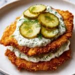 This Dill Pickle Parmesan Chicken recipe combines crispy coated chicken breasts with a tangy dill pickle ranch topping and Parmesan cheese for a flavorful, easy-to-make dish. Air-fried for a perfect golden crust and juicy interior, this dish is perfect for a quick weeknight dinner or a comforting weekend meal.