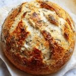 Store leftover bread in an airtight container or wrapped in foil at room temperature for up to 2 days. To keep it longer, freeze wrapped tightly for up to 3 months. Reheat in a warm oven (350°F) for 10 minutes to regain freshness and crisp crust.