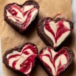 Keywords: heart shaped brownies, raspberry swirl brownies, cheesecake brownies, Valentine’s Day dessert, chocolate brownies with cheesecake, raspberry jam dessert