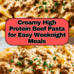 Keywords: High protein pasta, creamy beef pasta, quick weeknight dinner, healthy pasta recipe, lean ground beef recipe
