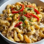 This High-Protein Creamy Philly Cheesesteak Mac & Cheese is a comforting, flavorful twist on the classic mac and cheese. Packed with savory ground beef, vibrant bell peppers, and a rich cheesy sauce, it’s a satisfying meal that’s perfect for any day of the week.