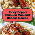 This Honey Pepper Chicken Mac and Cheese is a delightful twist on a classic comfort food. Creamy, cheesy pasta meets crispy honey-glazed chicken strips for a meal that’s sure to impress your family and friends. Perfect for weeknight dinners or casual gatherings.