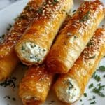 Crispy and flavorful oven-fried feta rolls filled with a creamy herbed feta mixture, topped with a sweet and spicy chili honey drizzle. This Mediterranean-inspired appetizer combines the delicate crunch of phyllo pastry with the creamy richness of feta cheese and fresh herbs, perfect for parties or an indulgent snack.