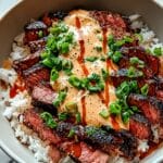 Keywords: Korean BBQ, steak rice bowls, spicy cream sauce, easy dinner, Korean recipe, marinated steak, rice bowl