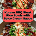 Korean BBQ Steak Rice Bowls are a flavorful and satisfying meal, combining tender marinated steak with fresh vegetables and a spicy cream sauce. Perfect for a quick weeknight dinner or a casual gathering, these bowls offer a balance of savory, spicy, and tangy flavors in every bite.