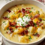 Keywords: baked potato soup, loaded potato soup, creamy potato soup, cheddar cheese soup, comfort food, easy soup recipe, russet potatoes