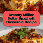 Million Dollar Spaghetti Casserole is a deliciously creamy and cheesy baked pasta dish featuring layers of al dente spaghetti, rich ground beef marinara, and a luscious blend of cream cheese, ricotta, sour cream, mozzarella, and Parmesan. Perfect for a comforting family dinner, this casserole combines savory flavors with a golden, bubbly top and a satisfying texture.