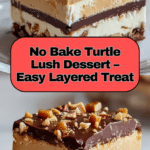 No Bake Turtle Lush is a rich and indulgent layered dessert that combines creamy, chocolatey, and caramel flavors with a crunchy cookie crust. Perfect for anyone craving a no-fuss treat, this dessert requires no baking and is easy to assemble for a crowd-pleasing finale.
