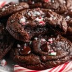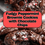Keywords: peppermint brownie cookies, chocolate peppermint cookies, holiday cookies, fudgy cookies, holiday dessert, chocolate chip peppermint, Christmas cookies