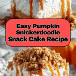 This Pumpkin Snickerdoodle Snack Cake is a moist, flavorful dessert that combines the warm spices of pumpkin with a sweet, creamy topping. Featuring a simple pumpkin and yellow cake mix base soaked with sweetened condensed milk, topped with fluffy Cool Whip, crunchy Heath bits, and drizzled caramel sauce, this cake offers a perfect balance of textures and autumnal flavors. It’s an easy-to-make treat perfect for fall gatherings or anytime you crave a delightful pumpkin dessert.