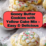 Quick Gooey Butter Cookies with Yellow Cake are soft, rich, and delightfully sweet cookies made with cream cheese and yellow cake mix. These easy-to-make festive cookies are coated in sprinkles and powdered sugar, perfect for holiday celebrations or any time you crave a buttery, gooey treat.