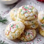Quick Gooey Butter Cookies with Yellow Cake are soft, rich, and delightfully sweet cookies made with cream cheese and yellow cake mix. These easy-to-make festive cookies are coated in sprinkles and powdered sugar, perfect for holiday celebrations or any time you crave a buttery, gooey treat.