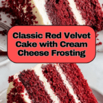 Keywords: red velvet cake, cream cheese frosting, layered cake, classic dessert, birthday cake, American dessert