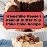 This Reese’s Peanut Butter Cup Poke Cake is a rich and indulgent dessert perfect for peanut butter and chocolate lovers. Moist chocolate cake is infused with creamy peanut butter pudding, topped with a smooth chocolate frosting, and finished with whipped peanut butter topping and chopped mini peanut butter cups. It’s a crowd-pleaser for any occasion.