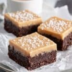 - Cool and Frost: Remove the pan from the oven and let the bars cool completely in the pan to allow them to firm up. Once cooled, spread a generous layer of salted caramel frosting over the top and sprinkle with coarse ground sea salt for an extra burst of flavor.