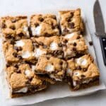 Keywords: s’mores cookie bars, graham cracker bars, chocolate marshmallow bars, easy dessert bars, baked s’mores