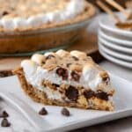 Keywords: S’mores pie, marshmallow fluff pie, campfire dessert, chocolate marshmallow pie, graham cracker crust dessert