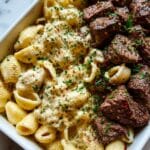 This Steak Bites and Shell Pasta in Garlic Butter Alfredo Sauce recipe combines tender, seared steak bites with perfectly cooked shell pasta tossed in a rich, creamy garlic butter Alfredo sauce. Easy to prepare and packed with savory flavors, it’s a comforting and elegant dish perfect for dinner any night of the week.