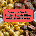 This recipe features tender steak bites paired with shell pasta tossed in a rich and creamy garlic butter Alfredo sauce. The dish combines perfectly seared steak pieces with a luscious Parmesan cream sauce, making it a delicious and satisfying meal that’s quick to prepare and sure to impress.