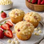 Keywords: Strawberry muffins, white chocolate muffins, streusel topping, breakfast muffins, American dessert
