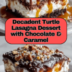 Turtle Lasagna Dessert is a rich, creamy, and irresistibly chocolatey treat that’s perfect for any gathering or special occasion. Layered with chocolate cookies, cream cheese mixture, caramel, fudge sauce, and pecans, this no-bake dessert combines classic flavors in a delightfully easy-to-make dish.