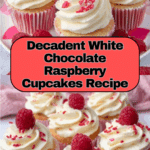 Delight in these luscious White Chocolate Raspberry Cupcakes, featuring moist vanilla cupcakes filled with tangy raspberry jam and topped with rich, creamy white chocolate buttercream. Perfect for celebrations or an elegant treat, these cupcakes combine the sweetness of white chocolate with the fruity burst of raspberry in every bite.