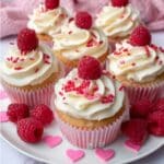 - Frost and Garnish: Pipe the white chocolate buttercream on top of each cupcake in a decorative swirl. Garnish with fresh raspberries or white chocolate shavings as desired.