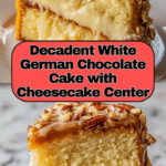 White German Chocolate Cake with a creamy cheesecake center offers a delightful twist on the classic treat. This moist cake layered with rich cheesecake filling and topped with a coconut-pecan frosting is sure to impress at any celebration or weekend gathering.