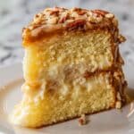- Assemble and serve: Once the cake has fully cooled, spread the coconut-pecan frosting evenly over the top. Slice the cake and serve. Enjoy!